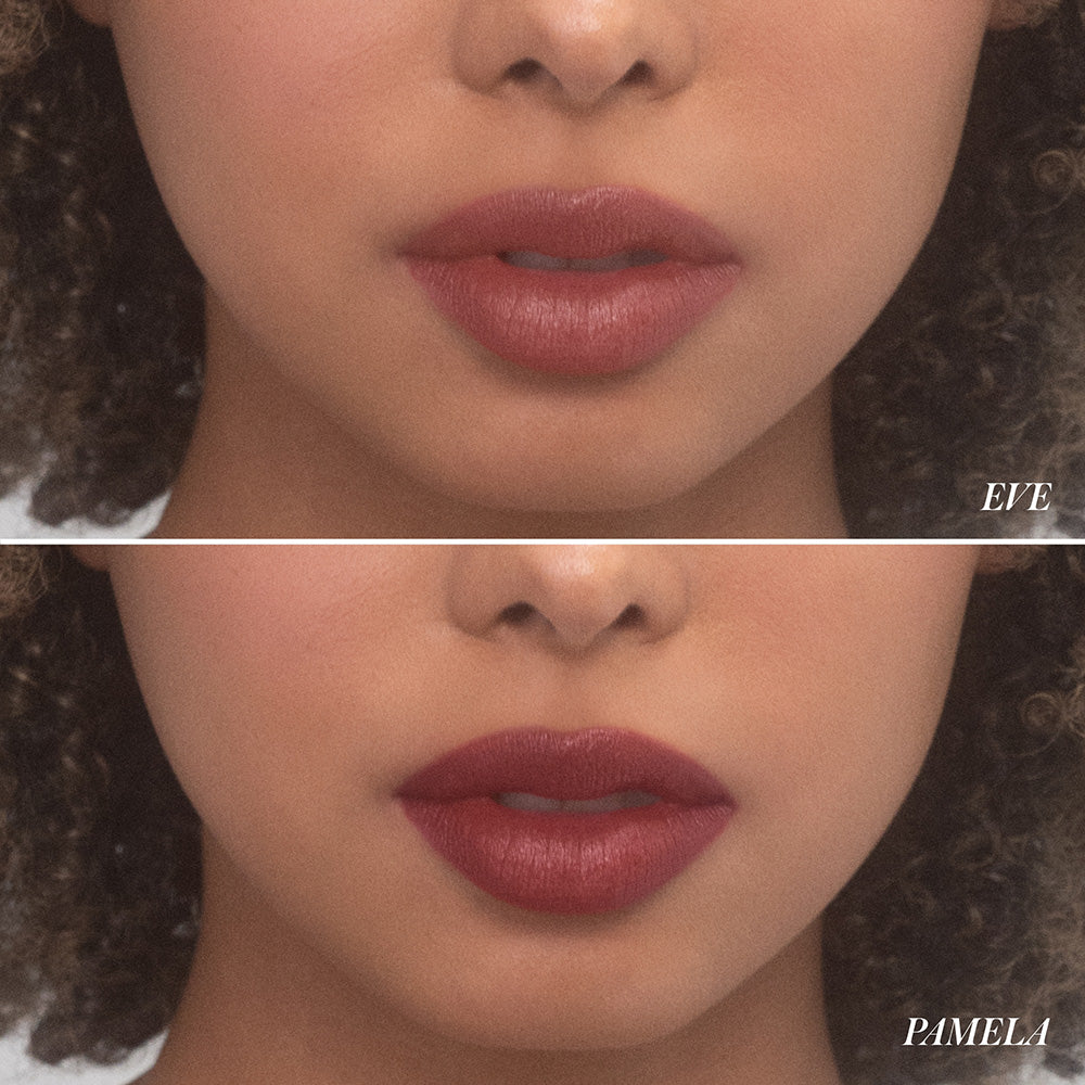 • Pamela: *Prunus Cerasus (Bitter Cherry) Fruit Water, Jojoba Esters, Helianthus Annuus (Sunflower) Seed Wax, Water/Aqua/Eau, *Alcohol Denat., Squalane (vegetable), Glycerin, Helianthus Annuus (Sunflower) Seed Oil Unsaponifiables, Silica, Polyglyceryl-4 Caprate, Polyglyceryl-3 Polyricinoleate, Isononyl Isononanoate, Acacia Decurrens Flower Wax, Polyglycerin-3, Potassium Sorbate, Tocopheryl Acetate, *Vanilla Planifolia Fruit Extract, Polyglyceryl-3 Diisostearate, *Simmondsia Chinensis (Jojoba) Seed Oil, Tocopherol (non-GMO), *Calendula Officinalis (Marigold) Flower, *Equisetum Arvense (Horsetail) Leaf Extract, *Hypericum Perforatum (St. John’s Wort) Flower/Leaf/Stem Extract, *Curcuma Longa (Turmeric) Root, *Hemidesmus Indicus (Country Sarsaparilla) Root Extract, *Withania Somnifera (Ashwagandha) Root Extract, Terminalia Ferdinandiana (Kakadu Plum) Fruit Extract, *Glycyrrhiza Glabra (Licorice) Root, *Olea Europaea (Olive) Leaf, Titanium Dioxide (CI 77891), Yellow 5 Lake (CI 19140), Red 7 (CI 15850), Iron Oxides (CI 77491, CI 77499).
